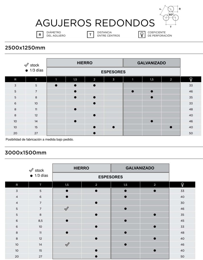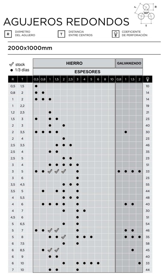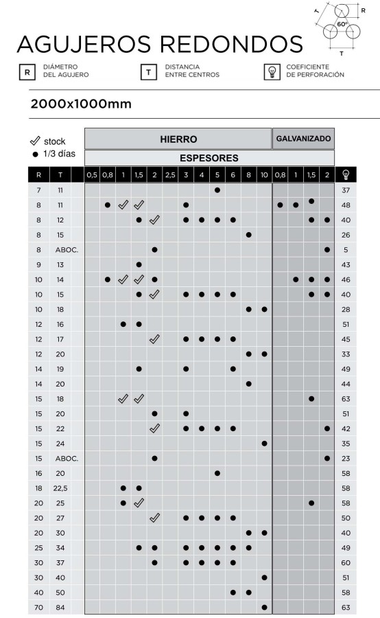 Agujeros desde: Ø 0,5 mm. hasta Ø 70 mm.